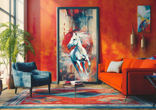 A Printable copy of a Colorful Abstract Horse Painting, Modern Equine Art, Equestrian Wall Decor, Vibrant Horse Artwork