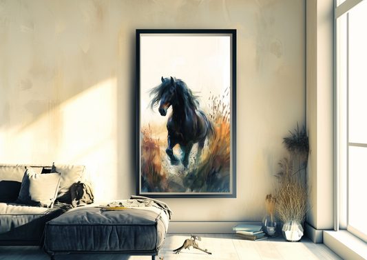 A Printable copy of a Beautifully Sculpted Black Horse Abstract Painting, Contemporary Art, Equine Artwork, Unique Wall Decor
