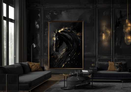 A Printable Copy of a Black Horse Painting, Sculpted Beauty, Liquid gold, Equine Wall Decor, Equestrian Gift