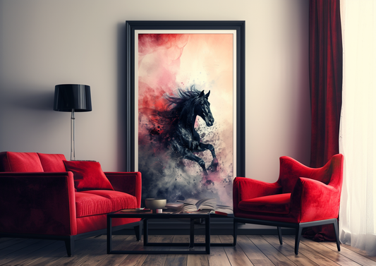 A Printable Copy of Abstract Black Horse Painting, Colorful Equestrian Art, Modern Wall Decor, Horse Lover Gift
