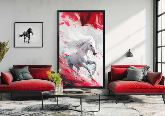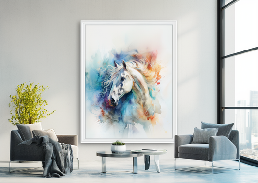 A Printable Copy of a White Horse Painting, Abstract Horse Art, Splash of Colors, Equestrian Decor, Fine Art
