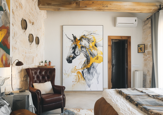 Abstract Horse Art in Alcohol Ink Style, Black And Grey With Yellow Accents, Expressionist Imagery, Modern Wall Decor, Unique Piece of Art